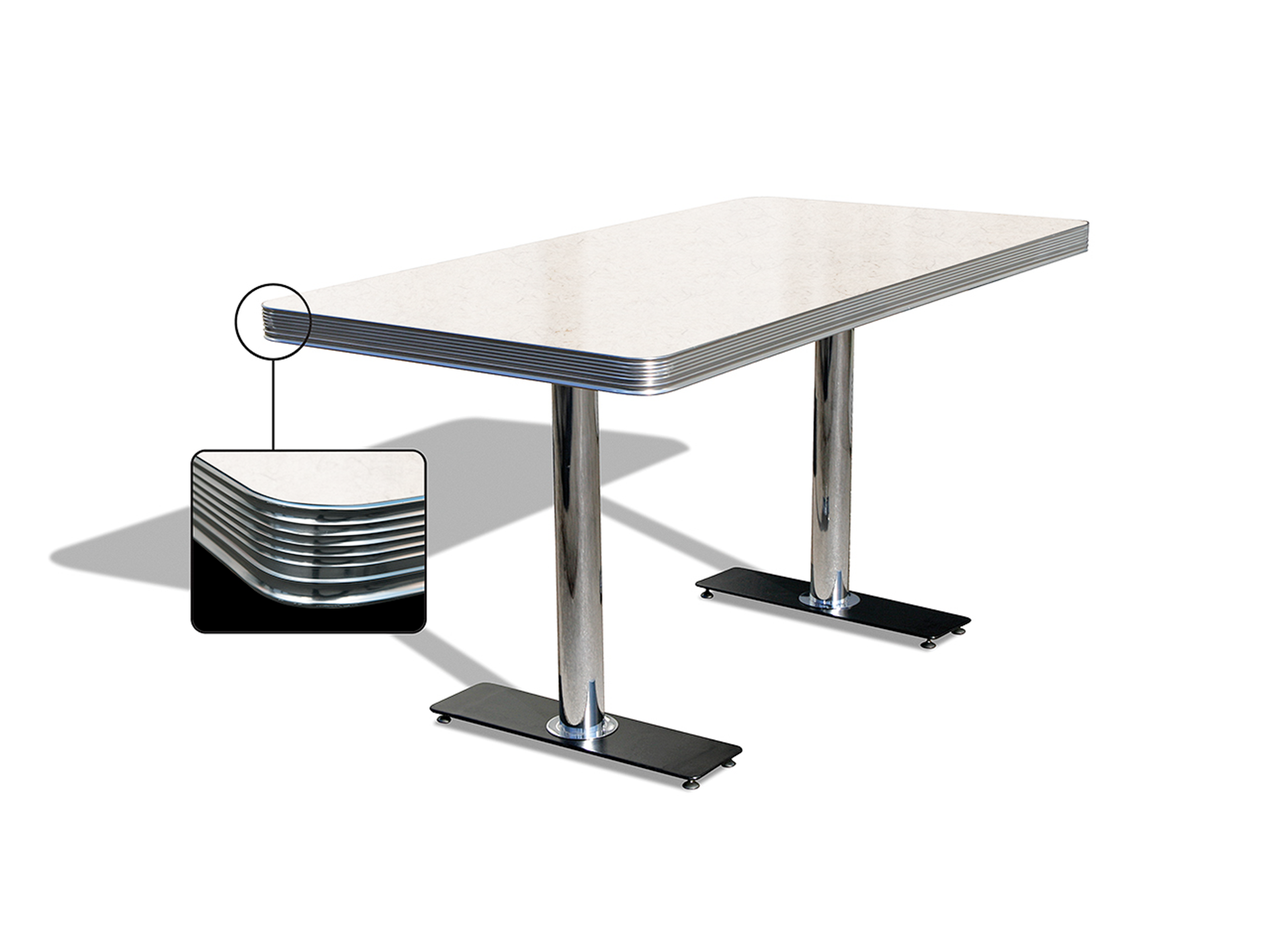 The TO-25 is a spacious vintage kitchen table with a true fifties look. The TO-25 is ideal for dining settings with ultra durable Formica table top. The chrome-plated table legs of the TO-25 are placed in the centre allowing free flowing space for your guests and chairs. The industrial steel floor plates are equipped with adjustable rubber legs to prevent damage to your floor. Whether in home or your commercial space, the TO-25 provides a retro look and fifties quality together.