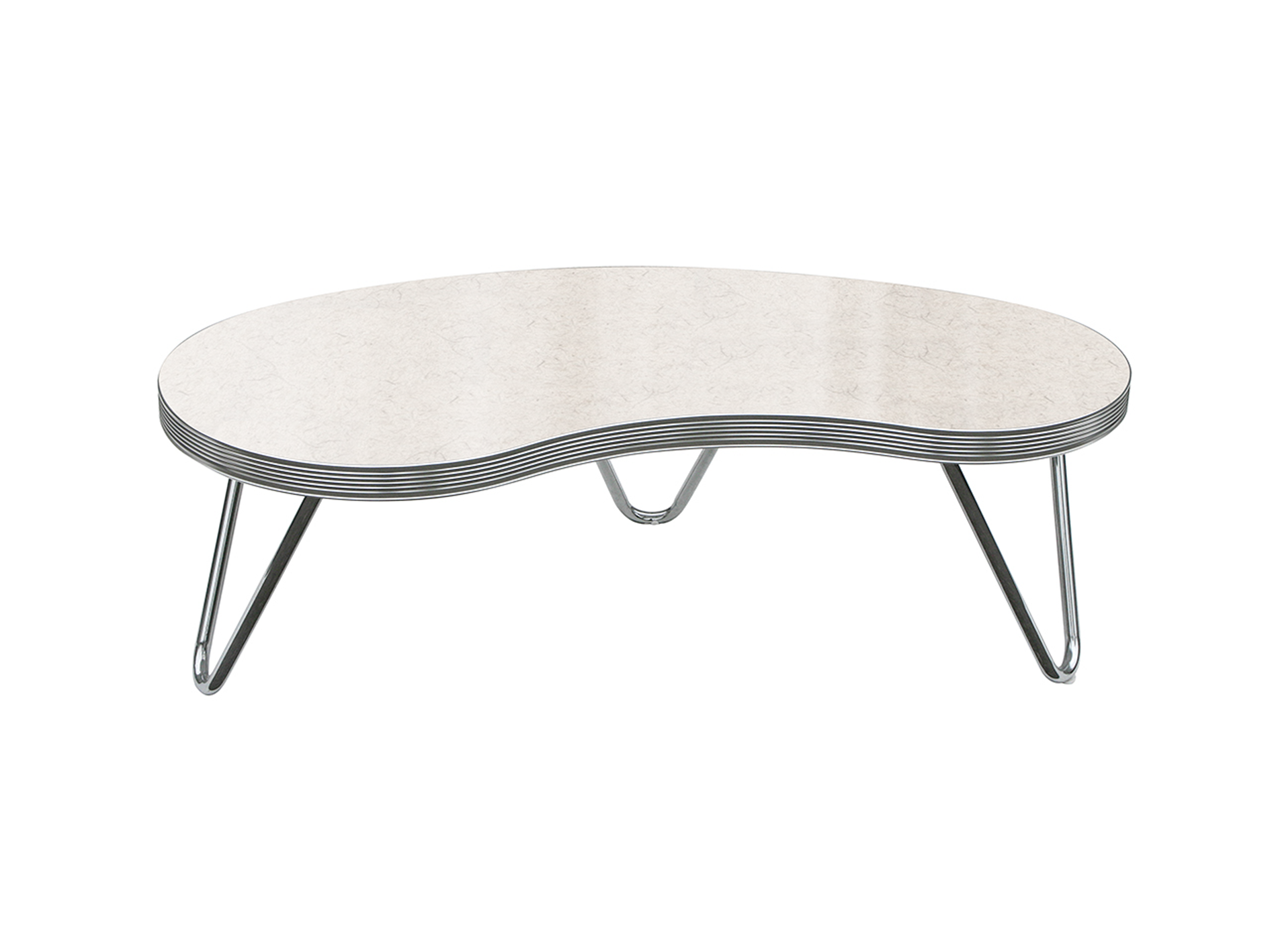 The TO-18 side table pays homage to 50's biomorphic design. With its mid to low profile, aluminium piping and free-form shape. The stylish TO-18 has a unique vintage look that can easily be placed in any retro interior or modern setting. The sturdy Formica tabletop is available in two colours and is finished with a hand wrapped chrome trim.