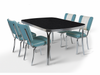 - L'ensemble comprend : des chaises d'arcade CB chromées et une table TO-27 en pierre noire.